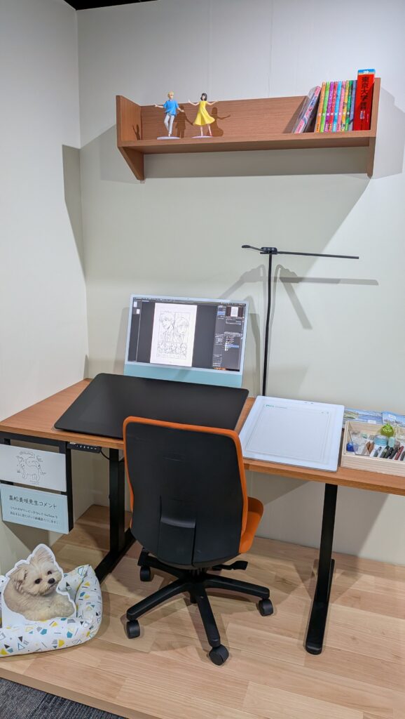 キャラクター紹介が終わると美津未ちゃんと志摩くんがお出迎え!先生の作業場の展示もありました!